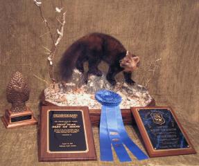 | 2007 North Carolina Taxidermy show 1st Place Masters Division NC Trappers Association Best Mammal Award McKenzie Mammal Award Breakthrough BEST OF SHOW Pine Marten |