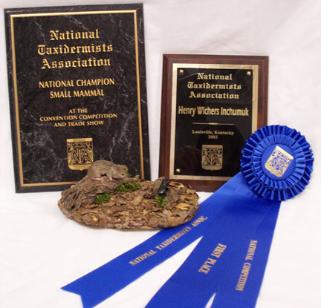 | 2003 National Taxidermists Association 1st place Professional division Best of Category "National Champion Mammal" Henry Wichers Inchumuk Award Field Mouse |