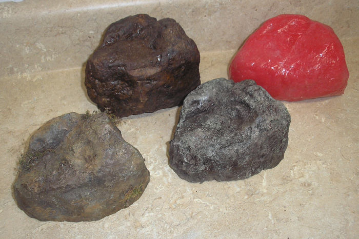 Here are the results .. there is the original rock (dark reddish one), the mold, and the two fakes!