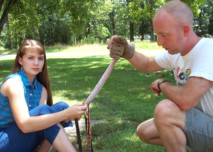 Here's a pic of me skinning the snake, with my dad holding it..