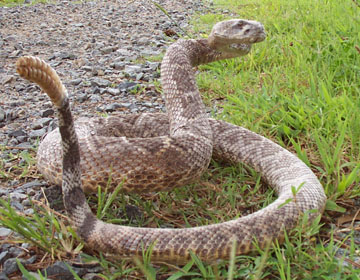 First of all, my sister raises show rabbits outside in our barn. Well, today she came running into the house, with my dad right behind her. He was holding a HUGE black rat snake with big bulge in it's stomach. Apparently, this snake had crawled up into one of the cages where there was a nest of five little 2-week old baby rabbits. By the time my sister found the snake, it had eaten all but one of the babies! This was truly a tragedy, as they were really special to my sister, not to mention an expensive breed of rabbit. My dad captured the snake.. gave it to me.. and I proceeded to try and break it's neck. Normally we don't kill black snakes since I always considered them "good snakes" that controlled the rats.. but we don't need them around the barn! Let me tell you, though.. snakes are NOT easy to kill! I twisted it's neck and held it by the throat tightly for several minutes until I was sure it was dead, and then I dropped it to the ground. Well, that snake started slithering right off! I grabbed it by the tail.. "Steve Irwin style" as I call it.. and held it there until my dad could chop off it's head. That seems to be the only way to kill a snake quickly, without risking being bitten!