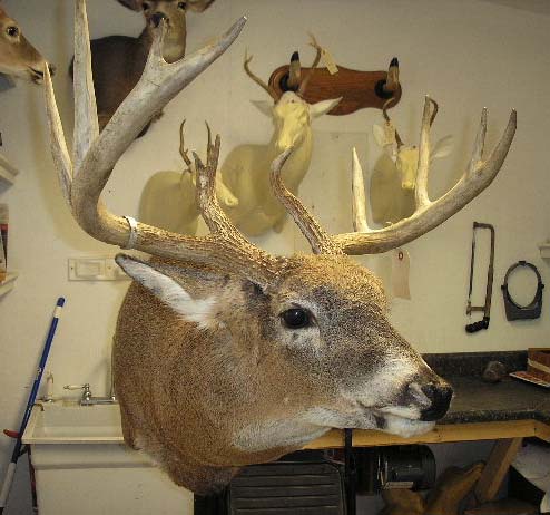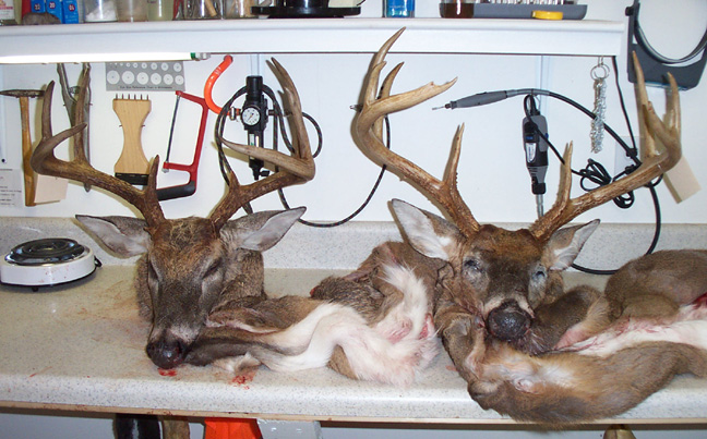 Here's the deer heads I took in yesterday, both from the same hunter! As you can see, he's one lucky guy.. both of these are great deer, especially the 10-pointer on the right! They are both going to be mounted in an aggressive, head down position.
