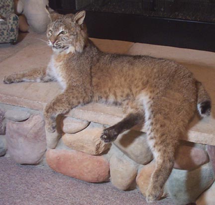 On the topic of bobcats, I got another bobcat from a customer about a week ago. That makes three bobcats I've got to do for customers! It must be a good year for bobcats. This one is by far the biggest and most spotted of the three I've gotten in; in fact, I don't believe they get much bigger than this. Here's a picture of it.. see the nice spots on the back legs?