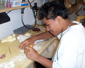 We spent Saturday at Carowinds! That was very fun.. by the end of the day we were SO tired... But we were ready to "taxi some derma" Sunday morning!! We began by altering an RC-5 raccoon form. We altered three of the legs, the neck, and the middle of the raccoon, thus turning it into a climbing raccoon form. We also mounted a pair of white mice. George wanted to see how I mounted the mouse for the NTA, so I showed him the way I fill mice with critter clay.. only, I used white clay this time.