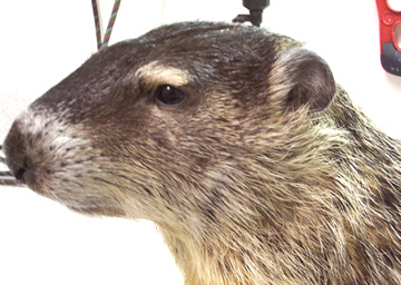 A striped skunk! This was a very smelly job! When I recieved the raw skin, it had a very strong odor to it. After taking it up to my shop, the smell spread throughout the entire house. Of course, mom was not happy about this! I'm just glad I was able to mount it after all, because the skin was starting to slip on the tail, feet, and belly area. I had to mount it very carefully, without pulling on the hair. But now the skin is drying, and the hair has tightened up. I tanned the skin using Liquatan! That's the first time I've ever used it, but it seems to work very nicely.