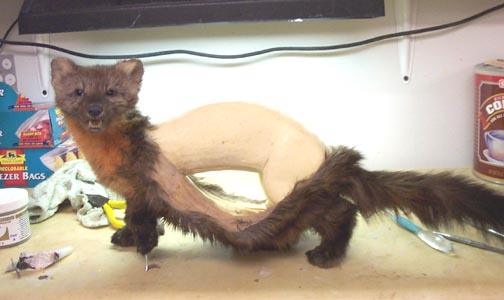 I have found, one of the main tricks to producing a beautiful piece is grooming. Do not underestimate the power of it! After I finished mounting last night, the marten looked ok, but it just didn't have that fluffy, "alive" look. That's because it's fur was all slicked down. But after blowing it with the air compressor and combing it a little (well, alot) it looks great!