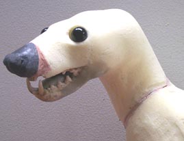 This is an absolutely beautiful animal -- just look at the orange throat fur! I made my own jawset for it, using the actual teeth, but not the entire skull. I hate cleaning skulls and rebuilding them with clay just so I can make my own jawset, so I found a new way to do it! This picture will better help to you understand: