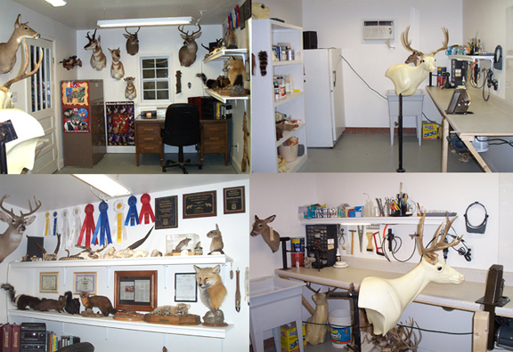 I have most of my mounts, and my ribbons and awards on one end. The other end is the work area. I've even got my freezer in there now.. that will be much more convenient!