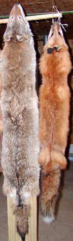 As a final note, I thought I would post a picture of some fine pelts I just bought... a huge coyote and a beautiful cherry red fox!
