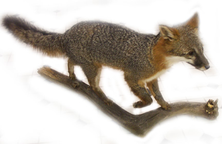 When I was out walking in the woods, I found nice branch that I thought my grey fox would look good mounted on (since I didn't feel like making an elaborate habitat base for it). I think it looks quite nice mounted on it...