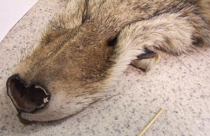 I am going to be working on it all this week.. I've got to, since I want to have it done for the Piedmont Mini Course competition which is only a month away! That's plenty of time, if I work quickly. I think this is going to be a really nice piece. I bought the cape from a taxidermist I know in Montana so it's got really thick, quality fur and it's a beautiful color too. Instead of being a greyish-brown color like normal coyotes, it's mostly white with some black here and there. I'm going to be mounting it on a Brian Harness form, which seems to be a really nice form. It shows alot more detail than most coyote pedestal forms I've seen. I'm using competition Tohickon eyes with a schleral band (I may decide to give the eyes a rotation and show a bit of the schlera, that always adds so much expression). And I am using Jan Van Hoesen's competition ear liners for the ears, like I did for my red fox pedestal last year. Those liners are pricey but they're the only competition quality ear liners I can seem to find for coyotes, and hey, if it earns me an extra point, that's worth way more than $13! I haven't quite decided what kind of base I want to put it on yet. At first I was thinking I would do a snow scene, but then I thought that wouldn't contrast very well with the white coyote. So, I think I'll just do a "summery" scene. I've got a cool idea on how I'm going to finish the back of the pedestal, but I'll reveal that idea later once I see how it turns out ;) If it turns out how I want it to, I think it'll look very cool and definately set the piece apart from "typical" pedestals that are simply finished with leather on the back.