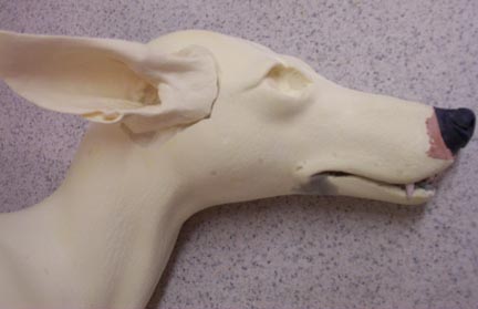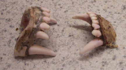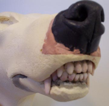 The form I bought was a closed-mouth form, but I wanted to show a little bit of teeth so I altered the form to a slight open mount, and removed the front mouth sections from an actual coyote skull. I cleaned them off and this is what the two peices looked like.