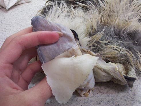 Since I am using an artificial nose, I had to cut the nose skin off of the cape! Here's what it looked like after the skin had been cut off