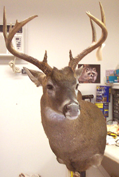 I mounted a customer's deer head last night! One down, four more to go. Here's a (somewhat dark) picture of it..