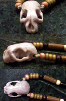 My mind never stops thinking of new things to try... lately I've been practicing making carvings out of antlers! I got the idea when I saw some carvings online.. so I took some scrap pieces and began to try it myself. My dremel works great for this type of thing! So far I have sculpted several miniature skulls out of antler. Here is my best one, which I made into a necklace. It is a miniature cat skull, about 1" long. The pictures show up a bit fuzzy, since it's so small. I am going to try making all sorts of different sculptures, and once I get quick at it I may even sell some of them.
