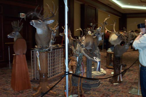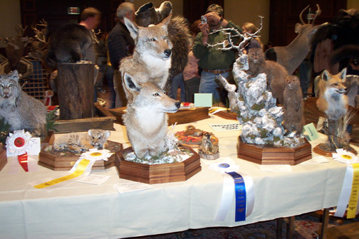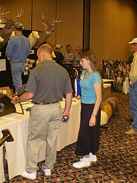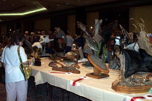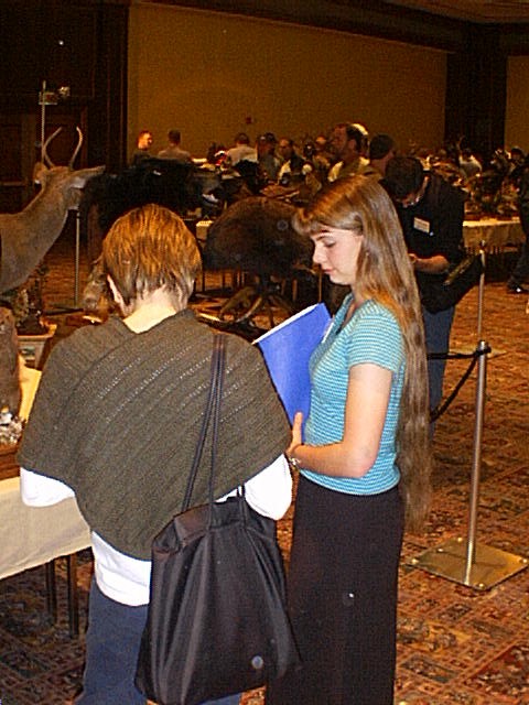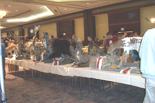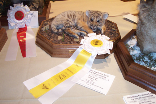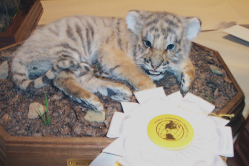 | The 2003 World Taxidermy Championships (April 8-12) in Springfield, Illinois was a truly amazing show! I learned so much there, through the many seminars, and the thorough critique that the judges gave me on the mount I had entered. For those of you who are wondering how I did... I got a third place on my tiger cub, in the professional division, and I am very happy with that! I think the World show is, by far, judged even harder than the Nationals. The following is a collection of photos I took at the show, in no particular order.. There are photos of competition mounts, me with my friends, and the trade show. I will be adding photos of more competition pieces later! All photos were either taken me or my dad, or Randal Waites. To view a picture, click on the words. This will help cut down on picture loading time. |